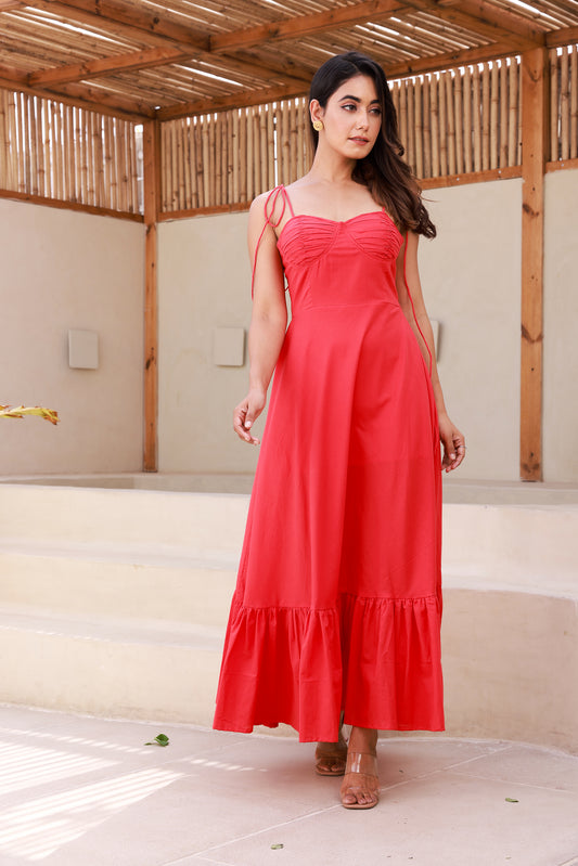 Deep V-Neck Cut Mid Runch Maxi Dress