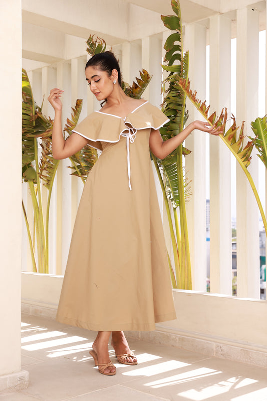 Dark Beige Poplin Maxi Dress with Half Sleeve Design