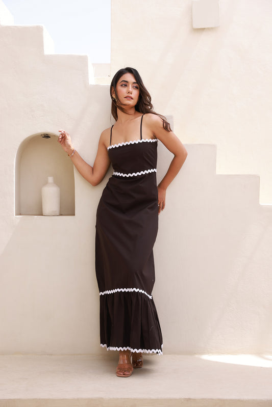 Zic-Zac Contrast Lace Dark Black A-Line Maxi dress