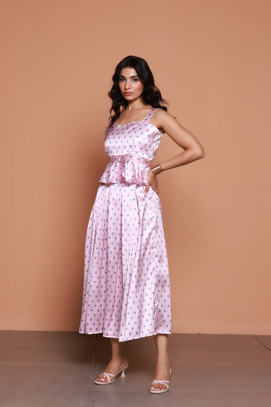Pleated Crop Top with Flared Skirt Co-Ord Set