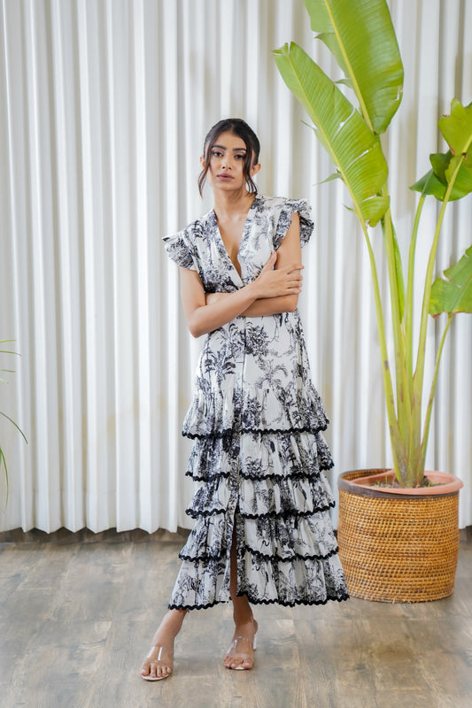 Tiger Print Back Tie Knot Tier Maxi Dress